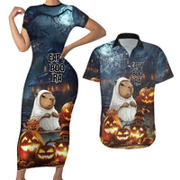 Capy-Boo-Ra Halloween Personalized Couples Matching Short Sleeve Bodycon Dress and Hawaiian Shirt Capybara Funny Spooky Ghost