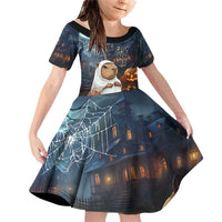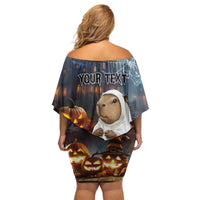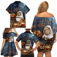 Capy-Boo-Ra Halloween Personalized Family Matching Off Shoulder Short Dress and Hawaiian Shirt Capybara Funny Spooky Ghost