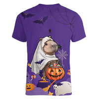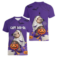 Capy-Boo-Ra Halloween Women V-Neck T-Shirt Bats And Pumpkins Funny Style LT18