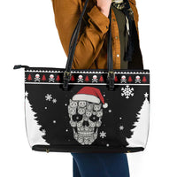 Cat Skull Santa Christmas Leather Tote Bag Xmas Holiday Patterns TS04