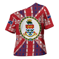 Turn heads and express your unique style with the Cayman Islands Christmas Cross Shoulder Shirt Xmas Pattern and Coat of Arms from Wonder Print Shop. Perfect for casual outings, festivals, or making a fashion statement, this custom-made cross shoulder shirt combines high-end craftsmanship with eye-catching design.