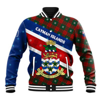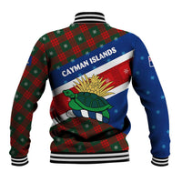 Cayman Islands Xmas Baseball Jacket Christmas Plaid Turtle and Coat of Arms Red Green Blue