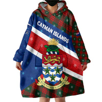 Cayman Islands Xmas Wearable Blanket Hoodie Christmas Plaid Turtle and Coat of Arms Red Green Blue