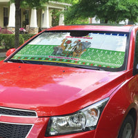 Central African Republic Christmas Auto Sun Shade with Santa and Safari Animals Baobab Trees Snowflakes and Tribal Pattern