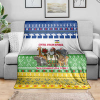 Central African Republic Christmas Blanket with Santa and Safari Animals Baobab Trees Snowflakes and Tribal Pattern