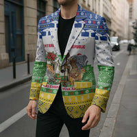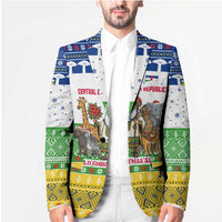 Central African Republic Christmas Blazer with Santa and Safari Animals Baobab Trees Snowflakes and Tribal Pattern