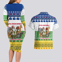 Central African Republic Christmas Couples Matching Long Sleeve Bodycon Dress and Hawaiian Shirt with Santa and Safari Animals Baobab Trees Snowflakes and Tribal Pattern TS04