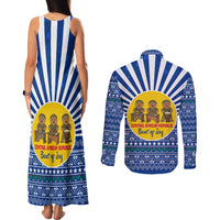 Central African Republic Christmas Couples Matching Tank Maxi Dress and Long Sleeve Button Shirt with Drumming Kids Beat of Joy Tribal Pattern and Snowflakes