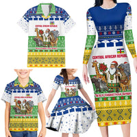 Central African Republic Christmas Family Matching Long Sleeve Bodycon Dress and Hawaiian Shirt with Santa and Safari Animals Baobab Trees Snowflakes and Tribal Pattern