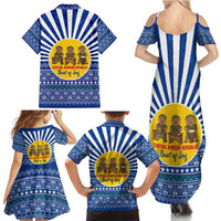 Central African Republic Christmas Family Matching Summer Maxi Dress and Hawaiian Shirt with Drumming Kids Beat of Joy Tribal Pattern and Snowflakes
