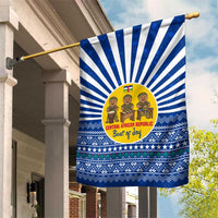 Central African Republic Christmas Garden Flag with Drumming Kids Beat of Joy Tribal Pattern and Snowflakes TS04