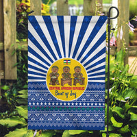 Central African Republic Christmas Garden Flag with Drumming Kids Beat of Joy Tribal Pattern and Snowflakes