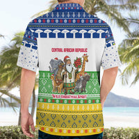 Central African Republic Christmas Hawaiian Shirt with Santa and Safari Animals Baobab Trees Snowflakes and Tribal Pattern