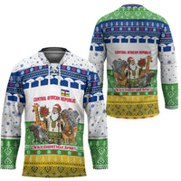 The Central African Republic Christmas Hockey Jersey with Santa and Safari Animals Baobab Trees Snowflakes and Tribal Pattern isn’t your typical jersey. At Wonder Print Shop, we make custom apparel that’s game-day ready and crafted for everyday wear. Whether you're on the ice or cheering from the stands, this personalized jersey brings elite-level performance with a one-of-a-kind design — made just for you.