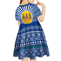 Central African Republic Christmas Kid Short Sleeve Dress with Drumming Kids Beat of Joy Tribal Pattern and Snowflakes