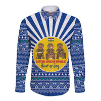 Central African Republic Christmas Long Sleeve Button Shirt with Drumming Kids Beat of Joy Tribal Pattern and Snowflakes TS04