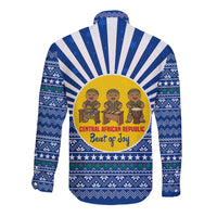 Central African Republic Christmas Long Sleeve Button Shirt with Drumming Kids Beat of Joy Tribal Pattern and Snowflakes