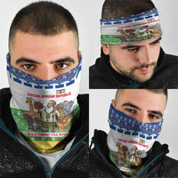 Central African Republic Christmas Neck Gaiter with Santa and Safari Animals Baobab Trees Snowflakes and Tribal Pattern
