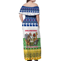 Central African Republic Christmas Off Shoulder Maxi Dress with Santa and Safari Animals Baobab Trees Snowflakes and Tribal Pattern TS04