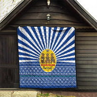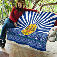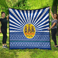 Central African Republic Christmas Quilt with Drumming Kids Beat of Joy Tribal Pattern and Snowflakes