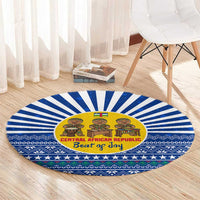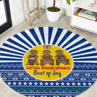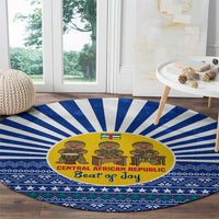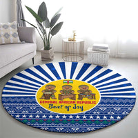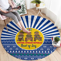 Central African Republic Christmas Round Carpet with Drumming Kids Beat of Joy Tribal Pattern and Snowflakes