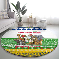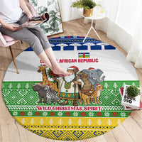 Central African Republic Christmas Round Carpet with Santa and Safari Animals Baobab Trees Snowflakes and Tribal Pattern TS04