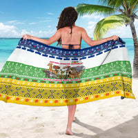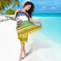 Central African Republic Christmas Sarong with Santa and Safari Animals Baobab Trees Snowflakes and Tribal Pattern TS04