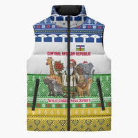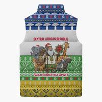 Get your Central African Republic Christmas Sleeveless Puffer Jacket with Santa and Safari Animals Baobab Trees Snowflakes and Tribal Pattern by Wonder Print Shop today and experience warmth, style, and versatility in one perfect piece.