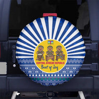 Central African Republic Christmas Spare Tire Cover with Drumming Kids Beat of Joy Tribal Pattern and Snowflakes