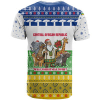 Central African Republic Christmas T Shirt with Santa and Safari Animals Baobab Trees Snowflakes and Tribal Pattern TS04