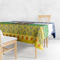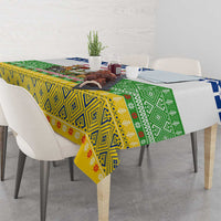 Central African Republic Christmas Tablecloth with Santa and Safari Animals Baobab Trees Snowflakes and Tribal Pattern TS04