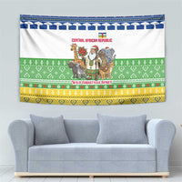 Central African Republic Christmas Tapestry with Santa and Safari Animals Baobab Trees Snowflakes and Tribal Pattern TS04