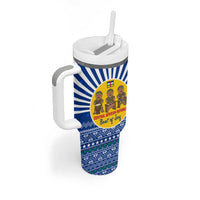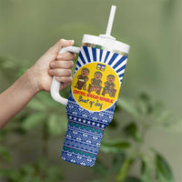 Central African Republic Christmas Tumbler With Handle with Drumming Kids Beat of Joy Tribal Pattern and Snowflakes