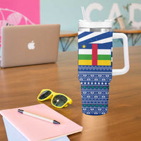 Central African Republic Christmas Tumbler With Handle with Drumming Kids Beat of Joy Tribal Pattern and Snowflakes TS04