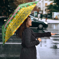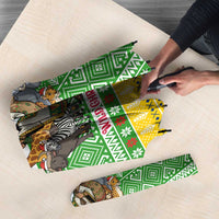 Get your Central African Republic Christmas Umbrella with Santa and Safari Animals Baobab Trees Snowflakes and Tribal Pattern by Wonder Print Shop today and enjoy protection with a personalized touch wherever you go.