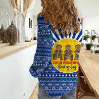 Central African Republic Christmas Women Casual Shirt with Drumming Kids Beat of Joy Tribal Pattern and Snowflakes