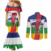 Central African Republic Republic Day 1958 Couples Matching Mermaid Dress and Long Sleeve Button Shirt Unite, Dignite, Travail - Flag Style