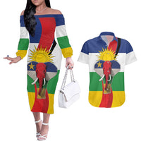 Central African Republic Republic Day 1958 Couples Matching Off The Shoulder Long Sleeve Dress and Hawaiian Shirt Unite, Dignite, Travail - Flag Style LT18