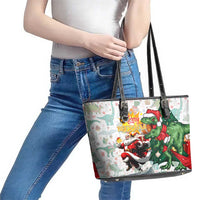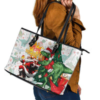 Cheer Santa Claus T-Rex Leather Tote Bag Merry Beermas Christmas