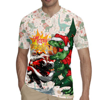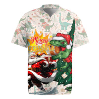Cheer Santa Claus T-Rex Rugby Jersey Merry Beermas Christmas