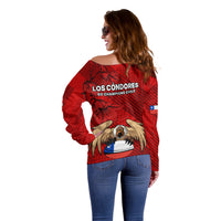 Chile Rugby Off Shoulder Sweater Los Condores Mascot with Bellflower World Cup 2023 LT9