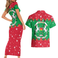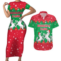 Christmas Burkina Faso Couples Matching Short Sleeve Bodycon Dress and Hawaiian Shirt Snowflake Horses and Coat of Arms TS04