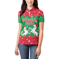 Christmas Burkina Faso Women Polo Shirt Snowflake Horses and Coat of Arms