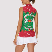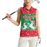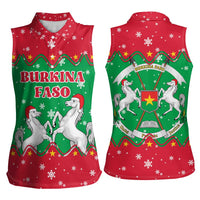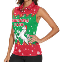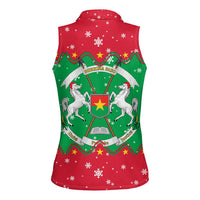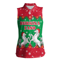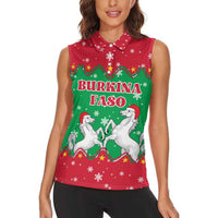 Christmas Burkina Faso Women Sleeveless Polo Shirt Snowflake Horses and Coat of Arms