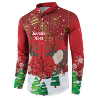Christmas Canada Button Sweatshirt Joyeux Noel - Caribou With Maple Leaf LT14