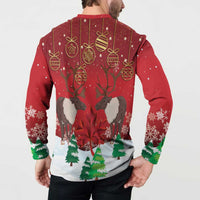Christmas Canada Button Sweatshirt Joyeux Noel - Caribou With Maple Leaf