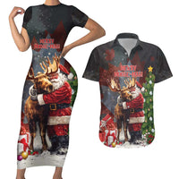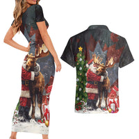 Christmas Canada Couples Matching Short Sleeve Bodycon Dress and Hawaiian Shirt Merry Moose-Mas Santa Hugging A Moose