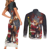 Christmas Canada Couples Matching Short Sleeve Bodycon Dress and Long Sleeve Button Shirt Merry Moose-Mas Santa Hugging A Moose LT14