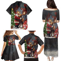Christmas Canada Family Matching Puletasi and Hawaiian Shirt Merry Moose-Mas Santa Hugging A Moose