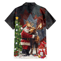 Christmas Canada Family Matching Short Sleeve Bodycon Dress and Hawaiian Shirt Merry Moose-Mas Santa Hugging A Moose
